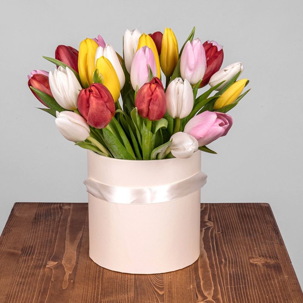 Colorful tulips - flowerbox