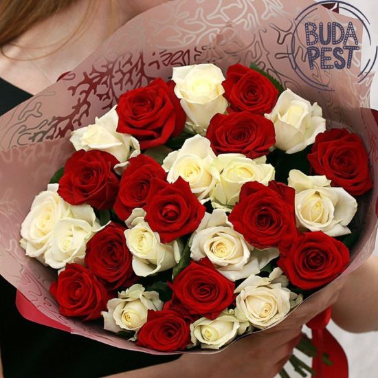 Bordó és fehér rózsák virágcsokor - csak Budapestre