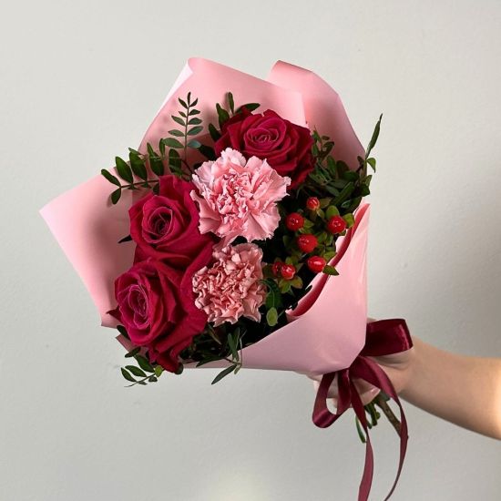🌹 Stílusos romantika: A bordó és rózsaszín rózsák elegáns kombinációja romantikus és stílusos atmoszférát teremt.